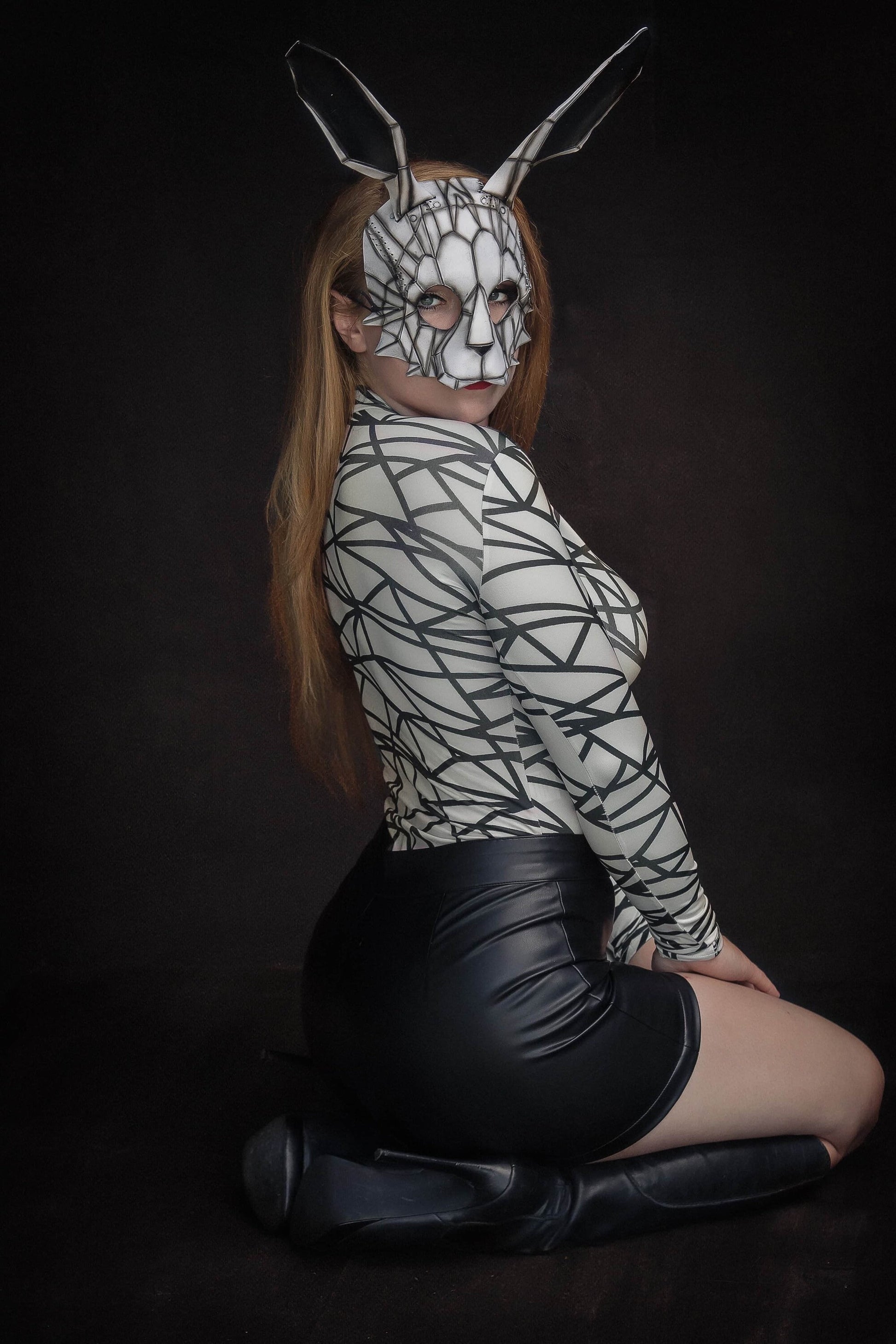 This mask features a tooled leather geometric bunny complete with ears. Stand out and make an impression at your next masquerade or event, or hang it on your wall.